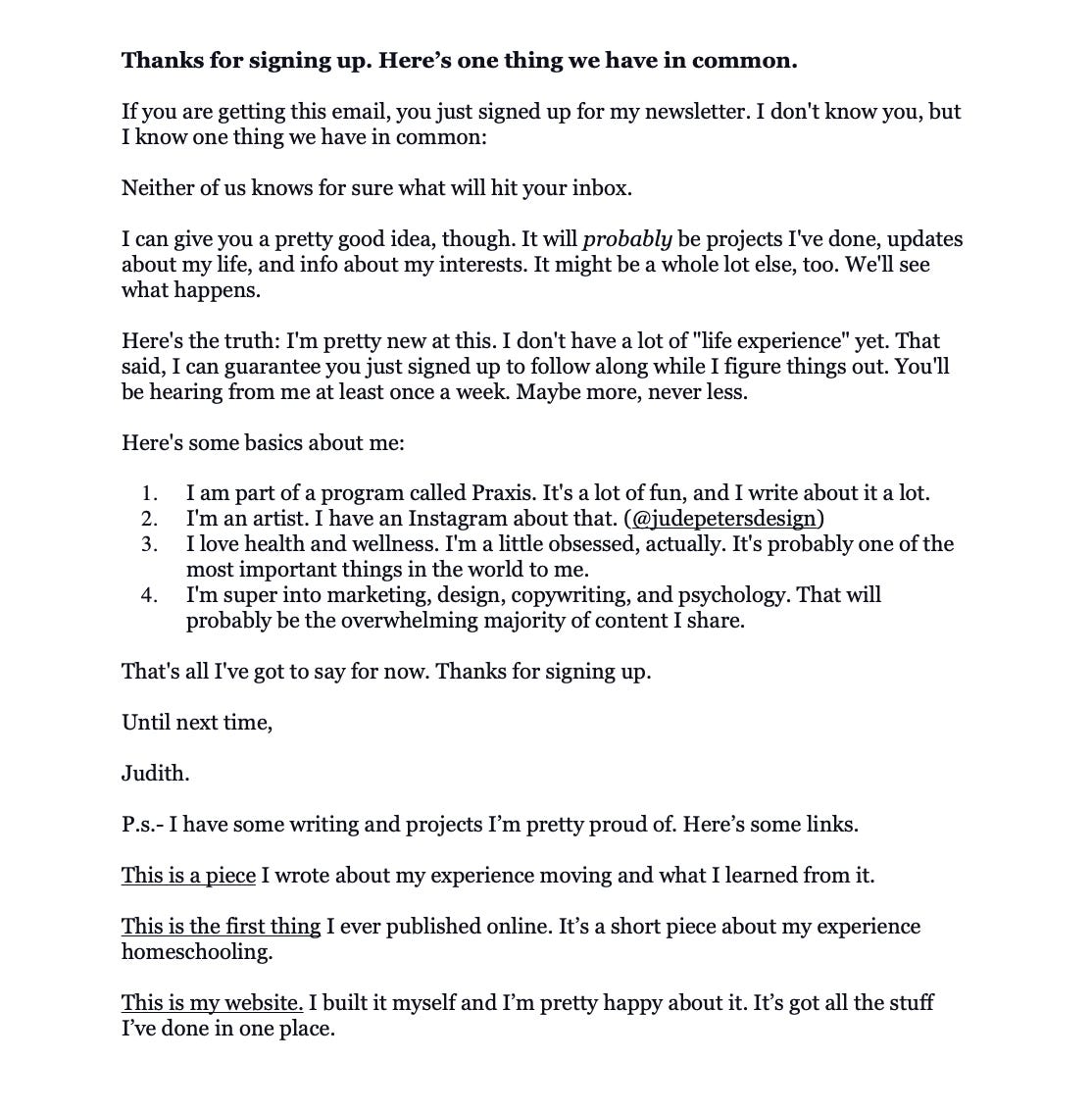 Also, I built a welcome email for my weekly Newsletter. I haven’t gotten around to making this my welcome, but I plan to this weekend. It was fun; I came up with three versions and made my family vote on a favorite.