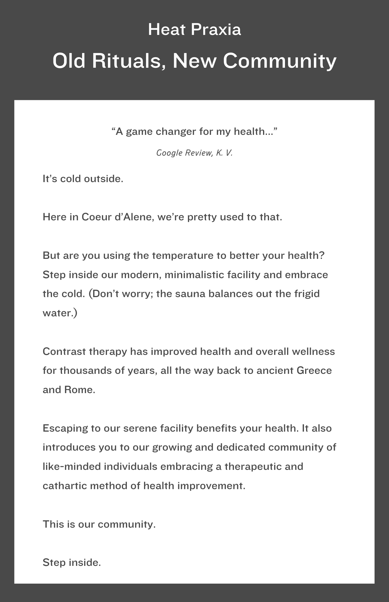This week, I also picked a company to analyze the copywriting of. I went with RXBAR. I also created an ad for a local business: I went with Heat Praxia in Coeur d’Alene. It was a lot of fun. I tried to copy keywords and other things I noticed about the company’s website.