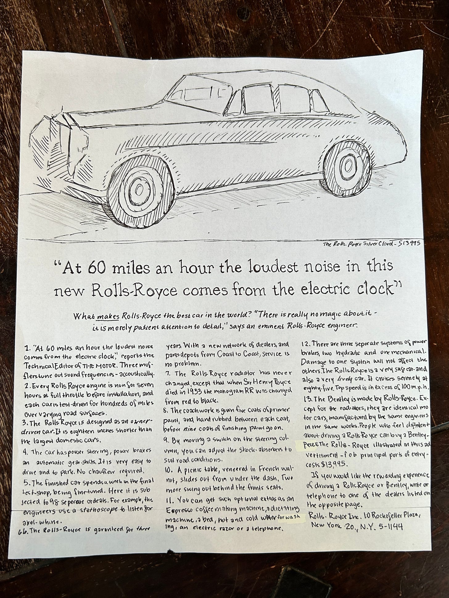 Also, this week, and arguably the highlight of my month, I had an absolute blast with an exercise where I copied an ad onto paper with pen and pencil. I did not take this task lightly. I broke out my old forgery skills nice handwriting and gave it my best shot.